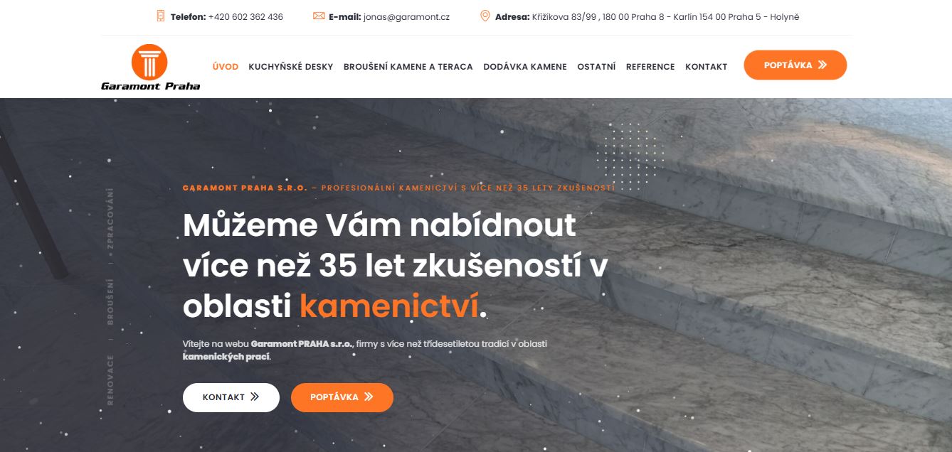 Zaměřujeme se na kuchyňské desky z kamene, broušení kamene a teraca, pokládku dlažeb a obkladů, ale i náročné projekty jako jsou renovace historických schodišť, zahradní architektura, nebo obklady bazénů.